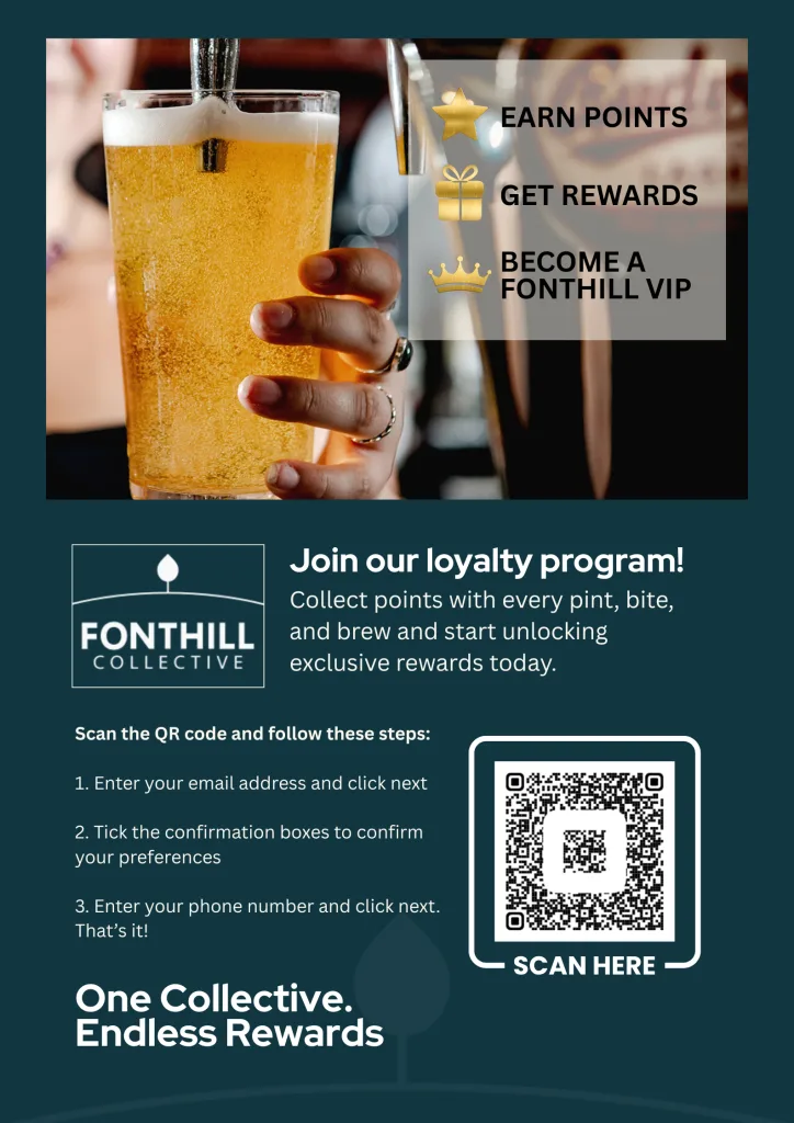 Our new loyalty scheme means you can collect points on every penny spent across our pubs and venues, then trade them in for free pints, exclusive merchandise, such as branded t-shirts and pint glasses, and more.